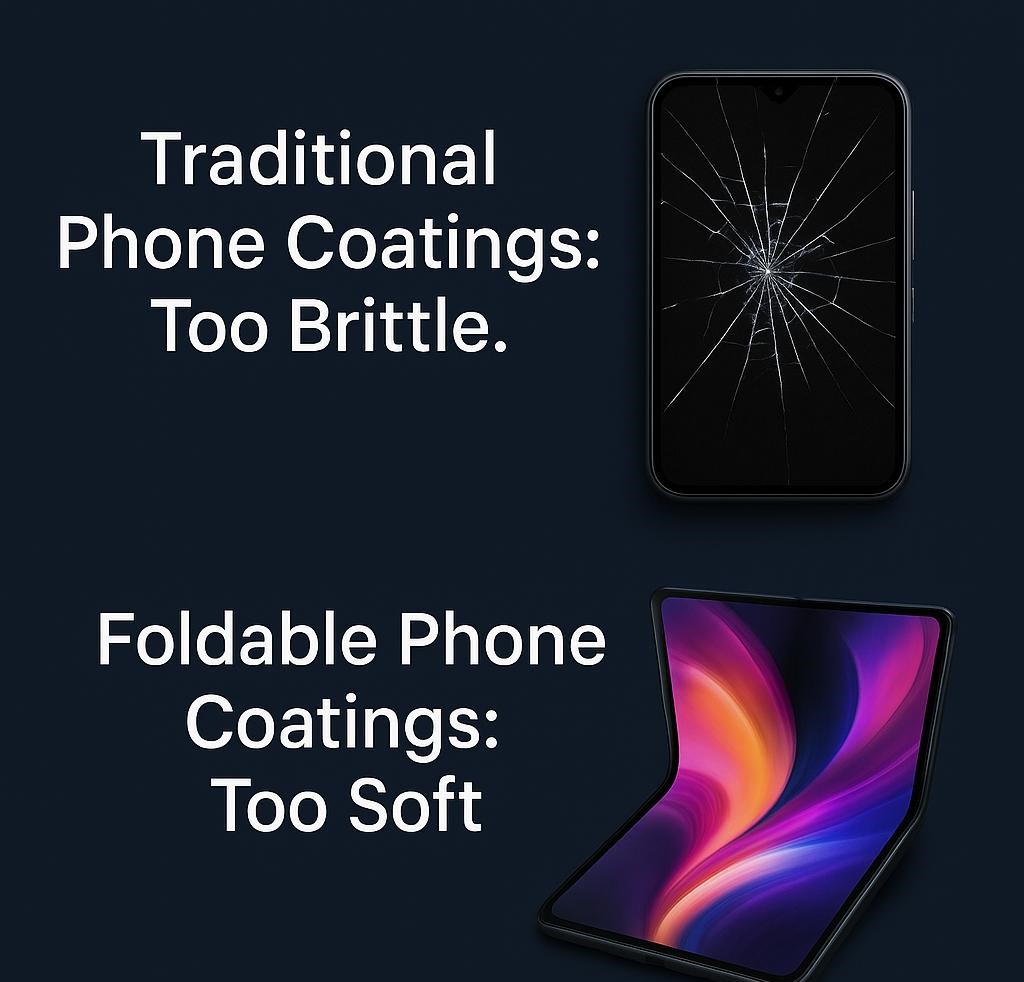Nanorock created the first anti-smudge coating that merges glass-like hardness with polymer flexibility, addressing the brittleness of traditional phone coatings and wear issues of foldable ones.